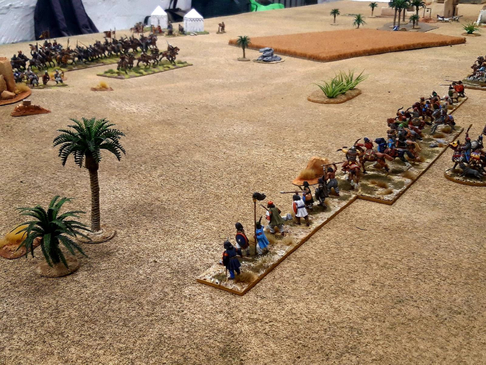 Лёгкая конница и Гулямы приблизись к коннице греков и принялись с близкой дистанции стрелять из луков. Потери не заставили себя ждать, один конный отряд был рассеян.
