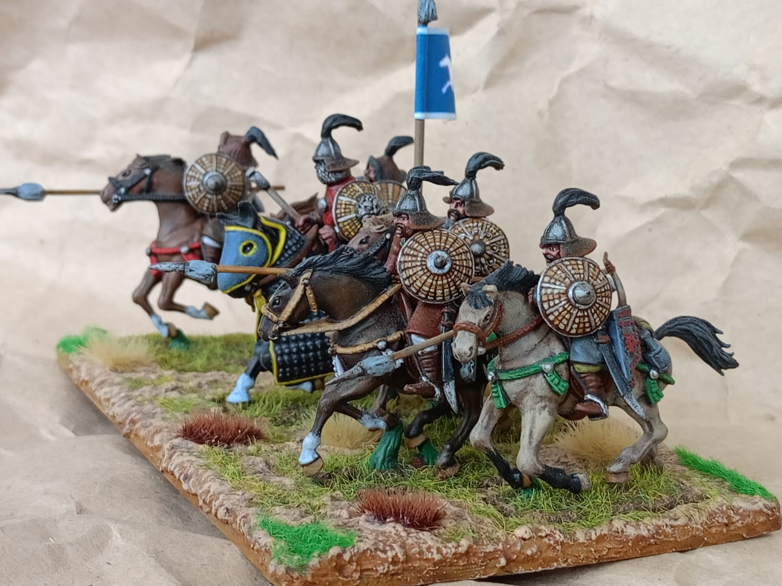 Сегодня у меня пополнение для игровой армии монголов на XIII век. Готова вторая база вспомогательной конницы Хулагуидов. Первая база